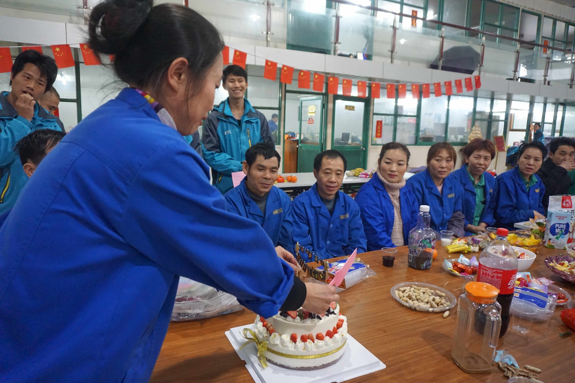 為了讓活動更熱鬧,我們同時組織2/3月份生日的員工進行生日會,下午16:00分,生日員工入座后由主持人黃文樂開場開始活動,上蛋糕,我們請出了財務部的財神英姐為我們點燃生日的蠟燭,開切蛋糕,分享蛋糕、唱起生日的贊歌,讓壽星們在歌聲中許下美好的愿望!在此送上我們最衷心的祝福!祝大家:生日快樂!緊接著是壽星們?yōu)榇蠹曳窒碓?/strong>2018年的生活中,最讓自己感動的一件事。最后我們?yōu)?/3月生日的員工派發(fā)生日禮物。